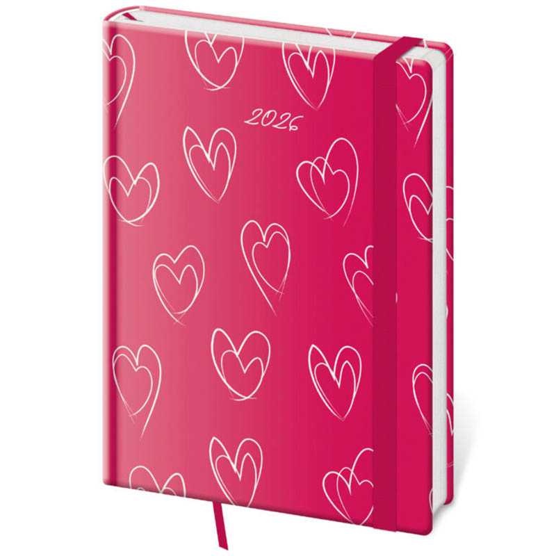 Nový rad diárov s výrazným letopočtom. Povrch má jemnú štruktúru a je vhodný pre všetky typy razieb. Denné rozloženie s česko-slovenským kalendáriom a doplnkovou angličtinou, nemčinou, maďarčinou a ruštinou.• kalendárium od decembra 2025• mesačný plánovací kalendár 2026 • mesačný plánovací kalendár 2027• ročný plánovací kalendár 2026–2027 • pracovný plánovací kalendár • sviatky Českej a Slovenskej republiky a a Slovenskej republiky • miesto pre osobné údaje • textilná záložka • perforované rožky • priestor na poznámky.Rozsah: 352 strán. Rozmer: 15 x 21 x 3 cm. Hmotnosť: 0,38. Papier: 70 g/m2 krémový papier. Väzba: tuhá knižná. Kalendárium: 6 jazyčné (CZ, SK, GB, DE, HU, RU) .