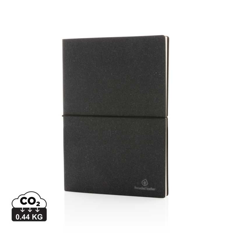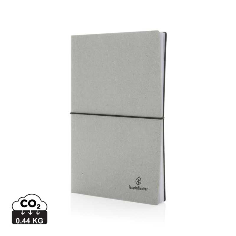Prémiový vzhľad, napriek tomu ekologická povaha výroby zápisníka s obalom z recyklovanej (spájané) kože. Obsahuje 80 listov/160 strán krémového linkovaného recyklovaného papiera s gramážou 75 g/m2.