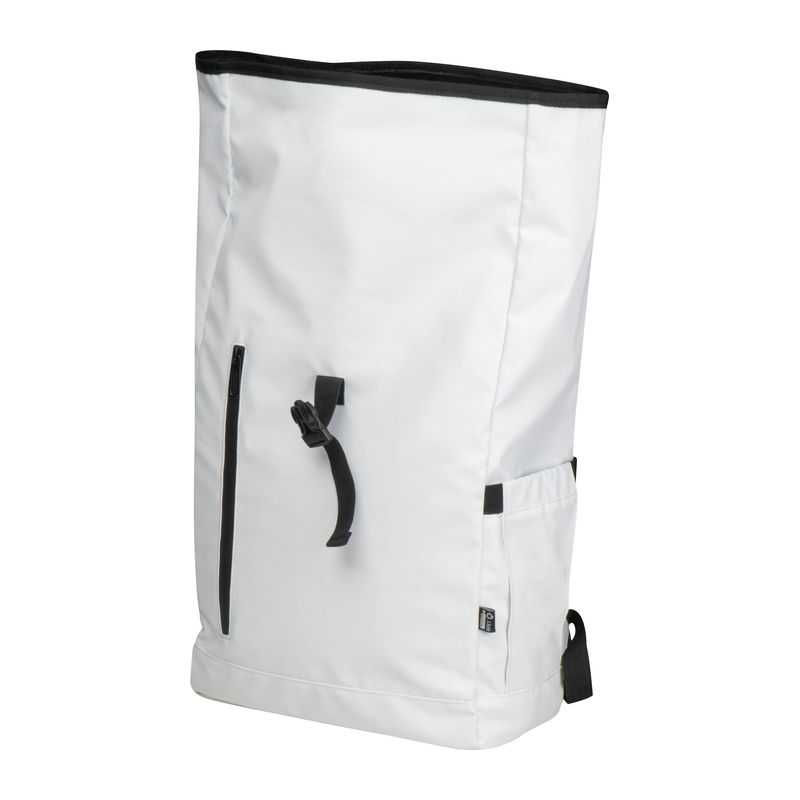 Trendy recyklovaný RPET batoh, jednotlivo zabalený v uzamykateľnom RPET puzdre na prenášanie.