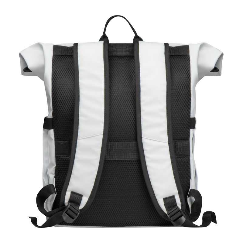 NOVINKA 2025 XMASS. Recyklovaný plátený batoh s hlavnou priehradkou na zips, polstrovanou priehradkou na notebook (15"), 2 prednými vreckami na zips, bočnými vreckami, popruhom na kolieskach, polstrovaným chrbtom a ramennými popruhmi. 70% recyklovanej bav