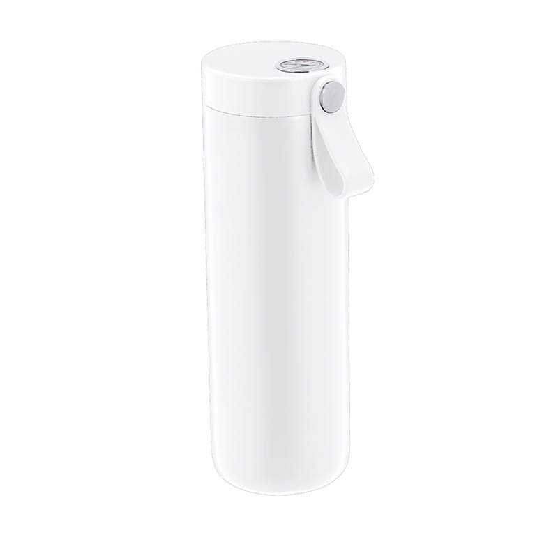 NOVINKA 2025. Thermal bottle made of stainless steel and double-walled with a capacity of 500 ml, with an analog temperature gauge, ranging from 0o to 100o. With a safety cap, integrated silicone handle, and matching body. BPA-free.
