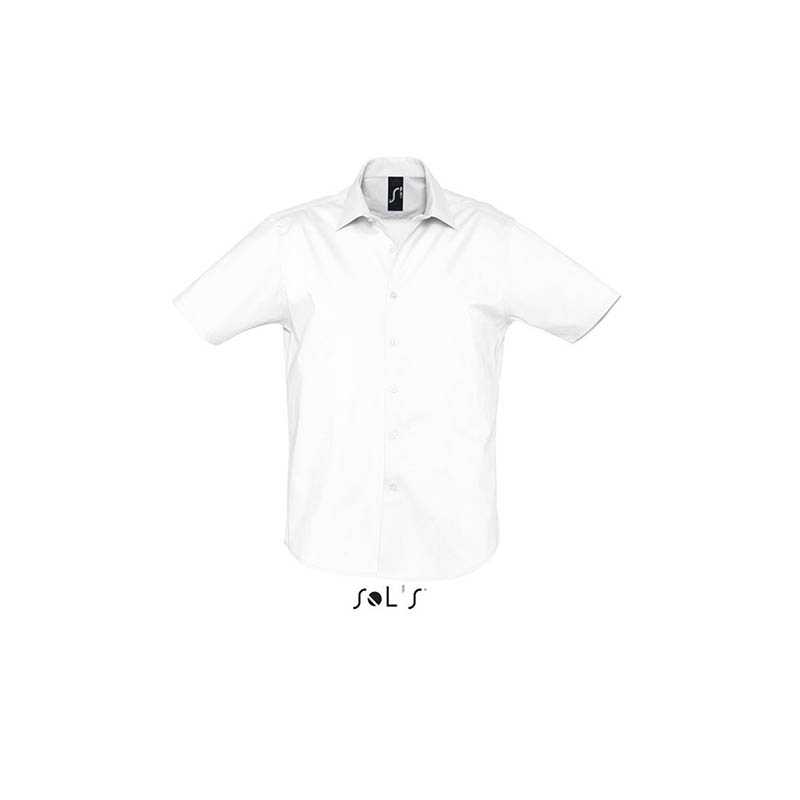 QUALITY - POPLIN STRETCH;97% cotton - 3% elastane;STYLE - TRENDY;Fitted cut;Short sleeves;Single-button collar;7 tone-on-tone button placket;Easy care;
