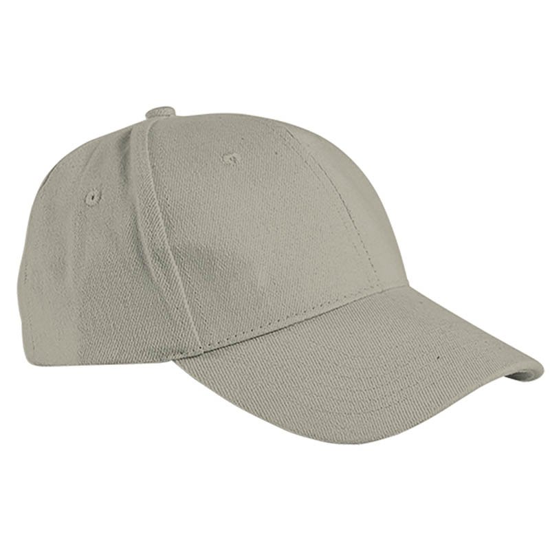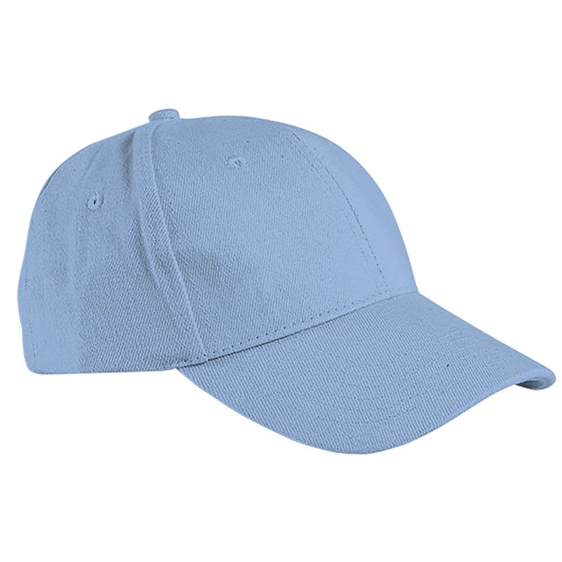 šestpanelový strih, vystužené 2 predné panely, prešívaný, zlahka prehnutý šilt, obšité vetracie otvory, potiaca páska, velkost nastavitelná suchým zipsom.Brúsený keper, 100 % bavlna.