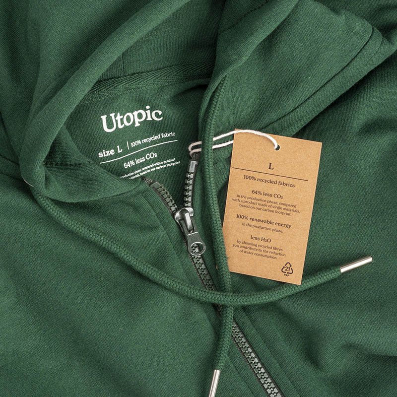 NOVINKA 2024. 100% regenerated fabric. Unisex hooded sweatshirt with zipper, fleece inside. Double-layer hood, metal eyelets, metal-tipped drawstrings, large pouch pocket, ribbed cuffs and bottom hem, side seam construction