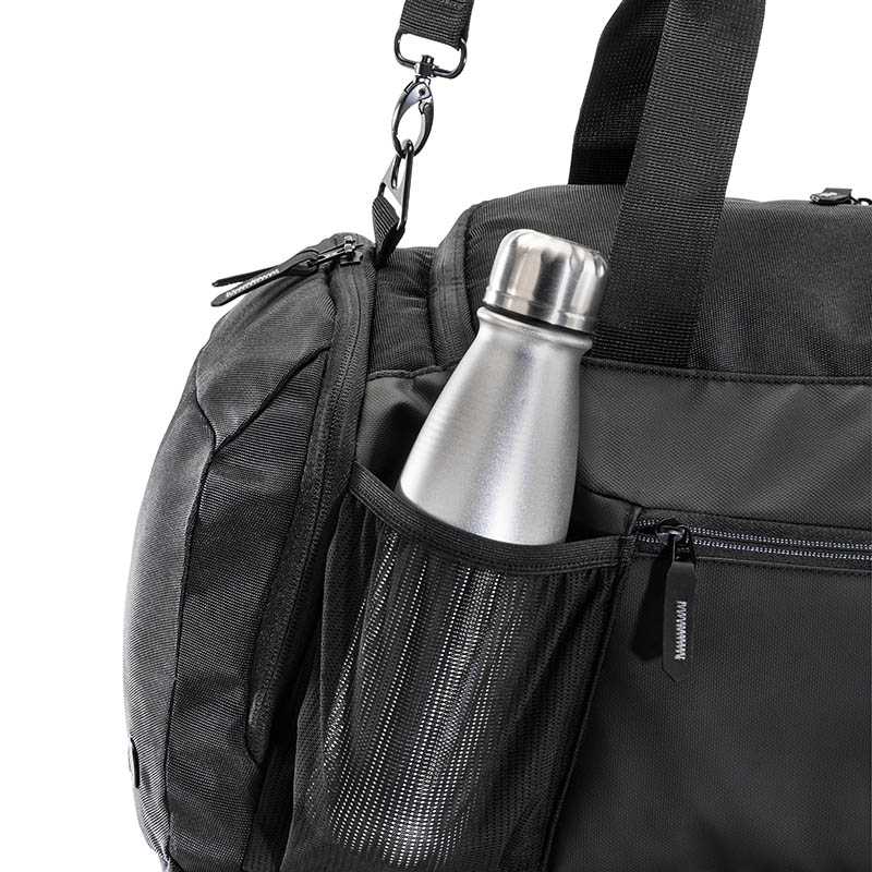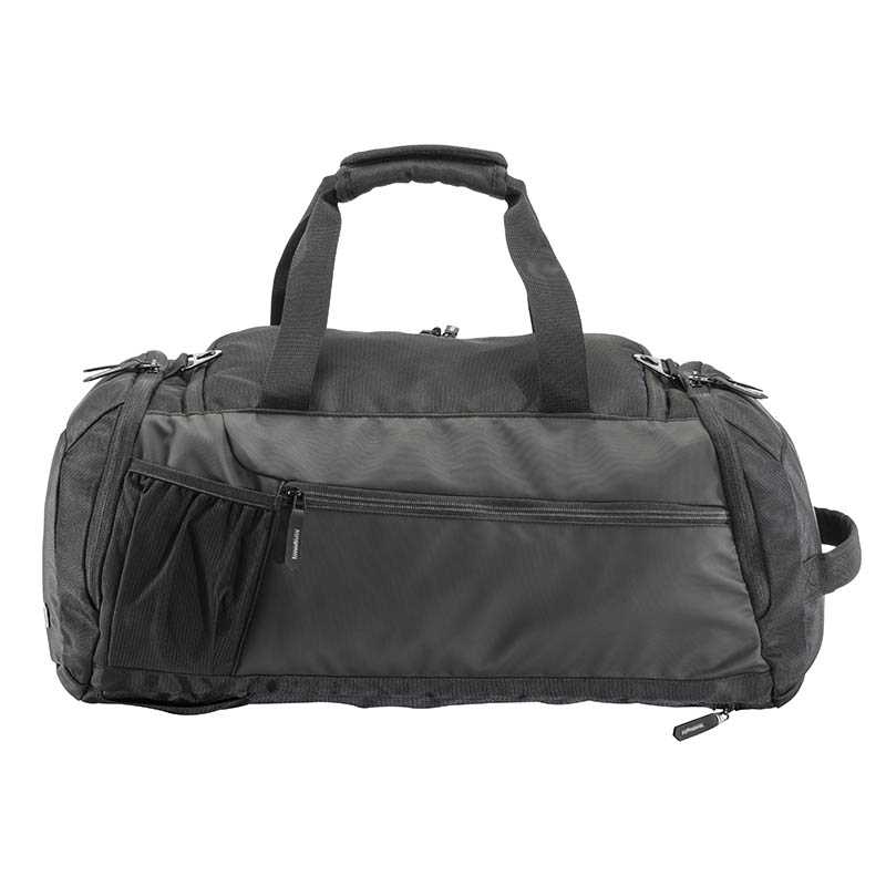 NOVINKA 2024. Recycled polyester (R-PET) Duffel/backpack . Large zipped compartment, one compartment for shoes or dirty clothes, one zipped side pocket, side mesh bottle pocket. Adjustable padded shoulder straps.