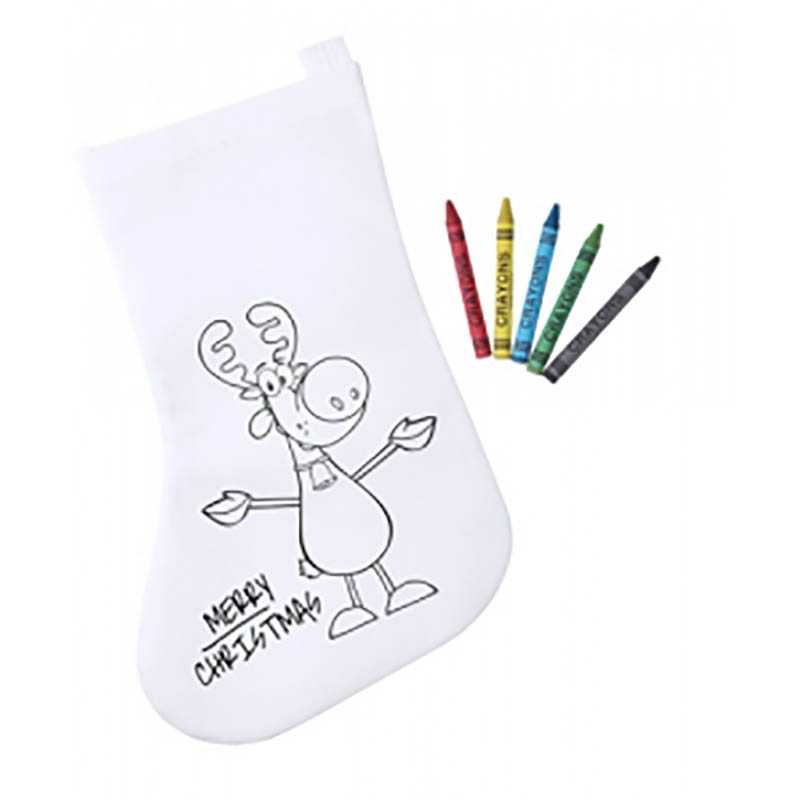Netkaná vyfarbovacia vianočná pančucha s 5 pastelkami, 80 g / m2.
