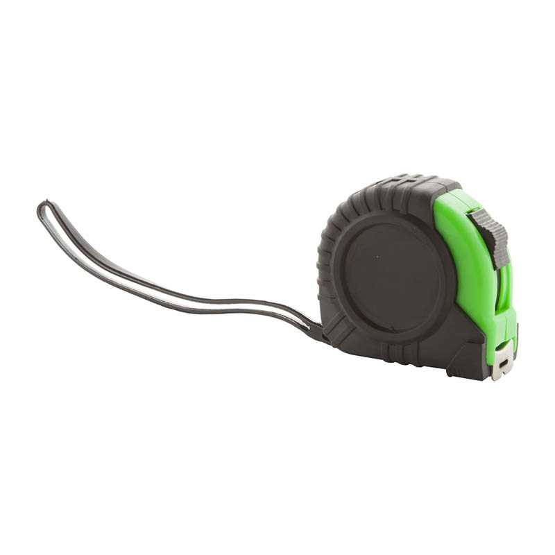 ABS tape measure (2 meter) with spirit level, memo pad, pen with blue ink, and belt clip.
