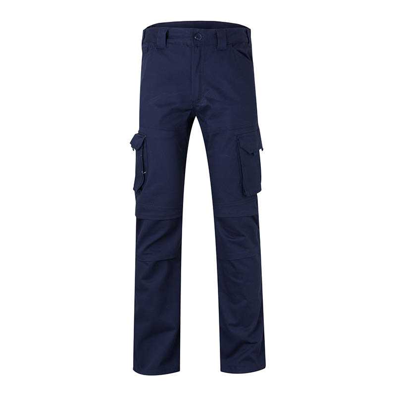 Front zip with button Back fabric reinforcement Knee fabric reinforcement Pleated knees Elastic side waistband Higher back waistband Triple safety seam 8 pockets