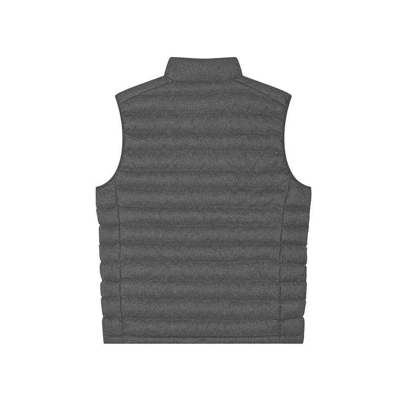 Sleeveless High collar Reverse nylon zip at center front Zipped welt pockets with extra grosgrain puller Elastic tape binding at armhole Fully quilted Side panels for better shape Inside seams with binding finish Bottom h
