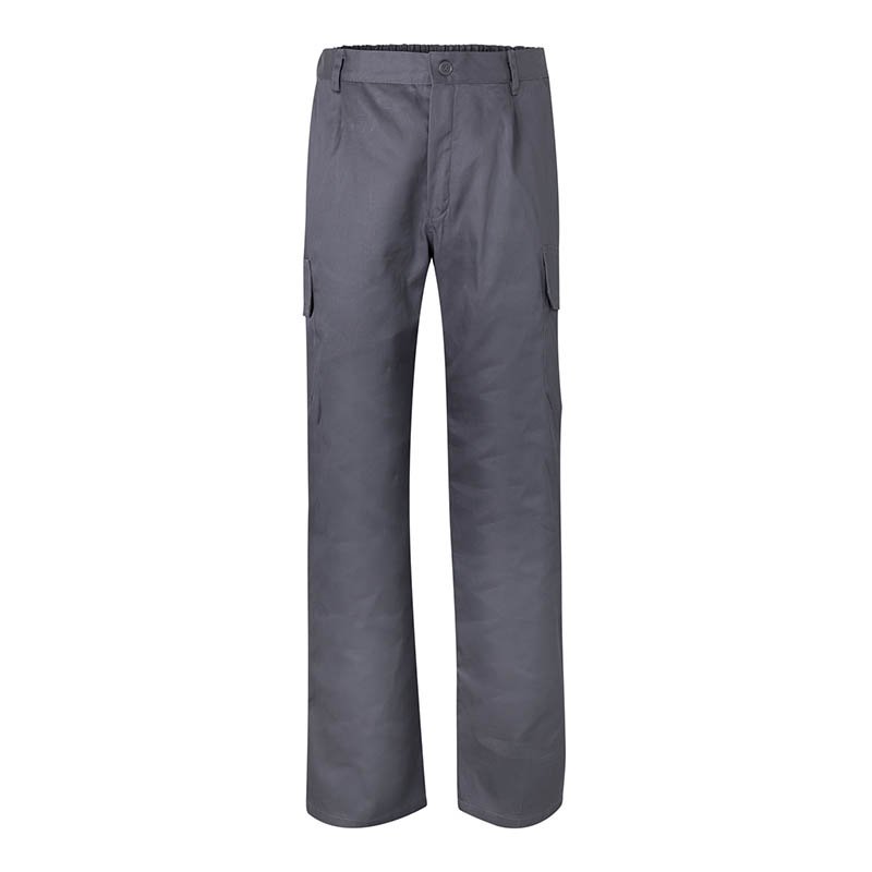 Front zip and button Reflective tape on lower legs Elastic waistband Back safety seam Darts Six pockets 2 French pockets 2 patch pockets with bellows, cover flaps and Velcro 2 back bell