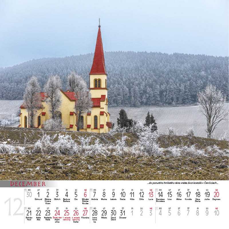 Kalendár Slovensko je vizuálnou poctou krajine, ktorá spája majestátne hory, pokojné doliny, historické mestá i skryté prírodné poklady. Každý mesiac Vás zavedie do iného kúta našej vlasti, od Vysokých Tatier cez rozprávkové hrady až po malebné dedinky a lúky plné ticha. Ideálny darček pre každého, kto miluje slovenskú prírodu, kultúru a domov. Priestor na potlač: 33 x 6 cm. Kalendárium: SK. Rozsah: 14 listov. Formát: 33 x 33 cm.