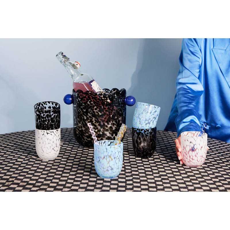 Like a delicious licorice candy - sweet, tasty, and irresistible. Made of hand-blown glass with a playful confetti pattern in shades of midnight black. Perfect for serving drinks, juice, milk, or coffee. It can also be used for tealights, and it brightens up the bathroom as a fantastic toothbrush glass. Handmade, variations in color and texture may occur. Dishwasher safe. Designed by Byon Studio. Comes in a 2-pack in a Byon box. Material: Mouth-blown glass Weight: 220 g Width: 80 mm; Height: 100 mm; Length: 80 mm Color: Black Technique Comment: Handmade, variations in color and texture may occur.