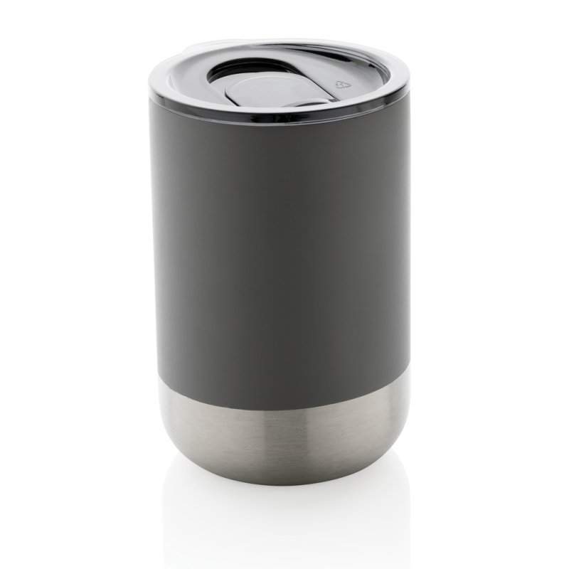 Termohrnček v modernom metalickom prevedeniu s dvojitou stenou z nehrdzavejúcej ocele. Nápoje uchová až 5h teplé a 15h studené. Uzáver je možné po uzavretí uzamknúť pre zabránenie vyliatiu tekutiny. Jedinečný dizajn umožňuje pohodlné a bezpečné uchopenie a ovládanie otvárania jednou rukou. Uzáver navrhnutý pre jednoduché ručné umývanie aj umývanie v umývačke riadu. Priemer zodpovedá väčšine držiakom nápojov do auta. Objem: 300 ml.