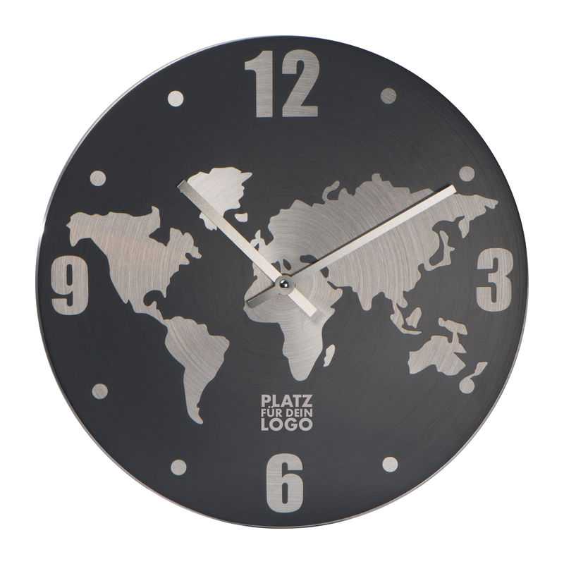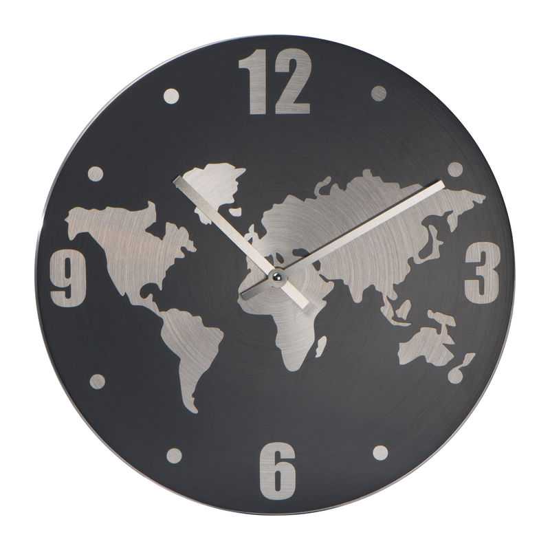 Hliníkové nástenné hodiny s mapou sveta v pozadí, ktoré pútajú pozornosť v každej miestnosti.