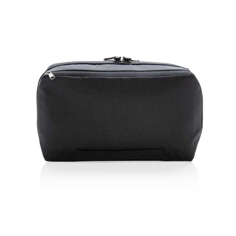 Štýlová toaletná taška z radu Sloane. Rad Sloane je vyrobený z RCS recyklovaného polyesteru, ktorý imituje odolné keprové plátno. RCS (Recycled Claim Standard) je globálny štandard, ktorý umožňuje overiť použitie recyklovaného materiálu v produkte naprieč celým dodávateľským reťazcom. Celkový podiel recyklátu podľa váhy produktu: 45%. Štýlová toaletná taška dotvára imidž dobre oblečeného cestovateľa a môže sa na dlhé roky stať dobrým spoločníkom.
