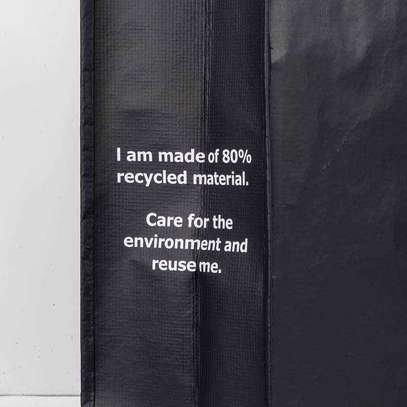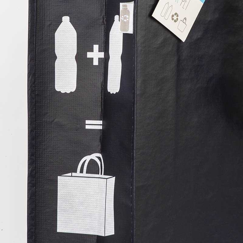 Taška z recyklovanej bavlny (70%) a PET (30 % rPET) (180 g/m2) so 65 cm rúčkami. Recyklovaná bavlna je jednofarebná a nefarbená. Surovina sa používa vo svojej pôvodnej forme a farbe, bez použitia farbív alebo bieliacich chemikálií, čo prispieva k nižšiemu vplyvu. Plná farba sa získa výberom recyklovanej priadze s rovnakým odtieňom a môžu sa objaviť nečistoty a farebné variácie. 380 x 420 mm