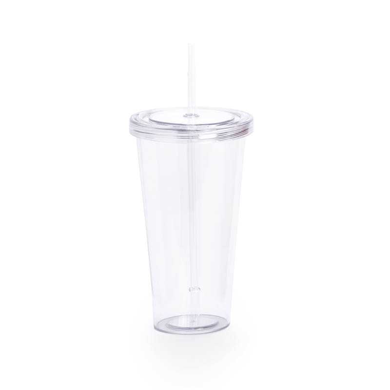 NOVINKA 2025. 750ml PS cup, with transparent finish and in a wide range of bright tones. With screw-on cap and matching color straw.Instruction manual available in Spanish and English.