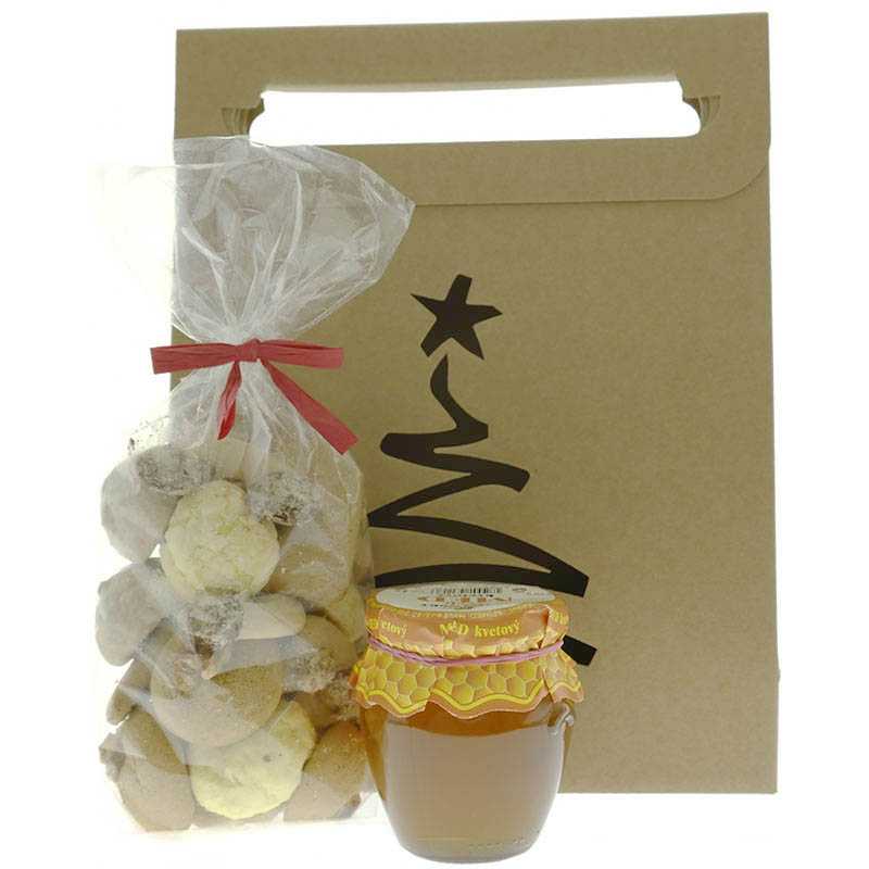 Vianočné koláčiky 250g, Kvetový med 250g amfora. Darčeková taška 30x23x10 cm