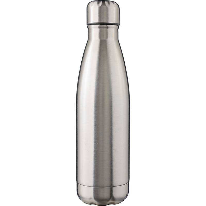 NOVINKA 2025. Recycled stainless steel single-walled flask (650 ml) with screw cap. Made from stainless steel 304. Recycled logo engraved on the flask. Individually packaged in a brown cardboard box.