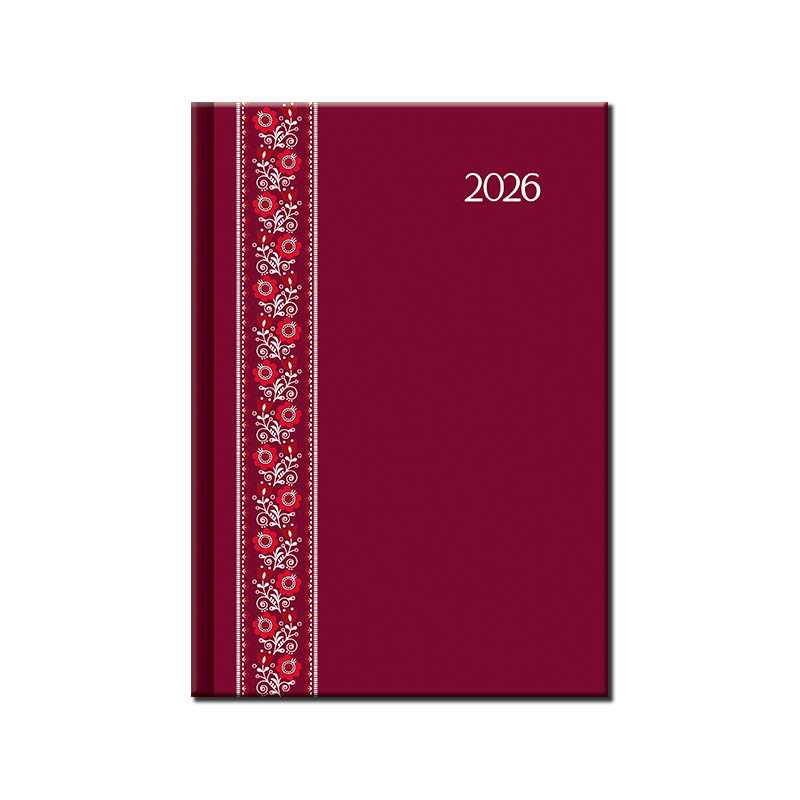 Nový rad diárov s výrazným letopočtom. Povrch má jemnú štruktúru a je vhodný pre všetky typy razieb. Denné rozloženie s česko-slovenským kalendáriom a doplnkovou angličtinou, nemčinou, maďarčinou a ruštinou.• kalendárium od decembra 2025• mesačný plánovací kalendár 2026 • mesačný plánovací kalendár 2027• ročný plánovací kalendár 2026–2027 • pracovný plánovací kalendár • sviatky Českej a Slovenskej republiky a a Slovenskej republiky • miesto pre osobné údaje • textilná záložka • perforované rožky • priestor na poznámky.Rozsah: 352 strán. Rozmer: 15 x 21 x 3 cm. Hmotnosť: 0,38. Papier: 70 g/m2 krémový papier. Väzba: tuhá knižná. Kalendárium: 6 jazyčné (CZ, SK, GB, DE, HU, RU) .
