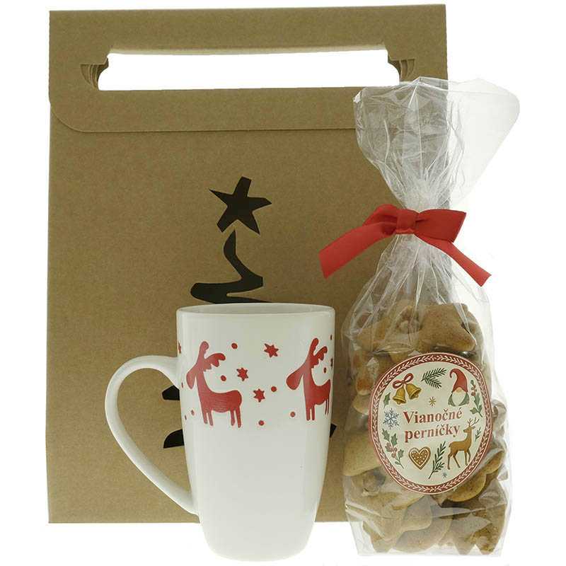 Vianočný hrnček 400 ml, Perníky vykrajované 150g. Darčeková taška 30x23x10 cm