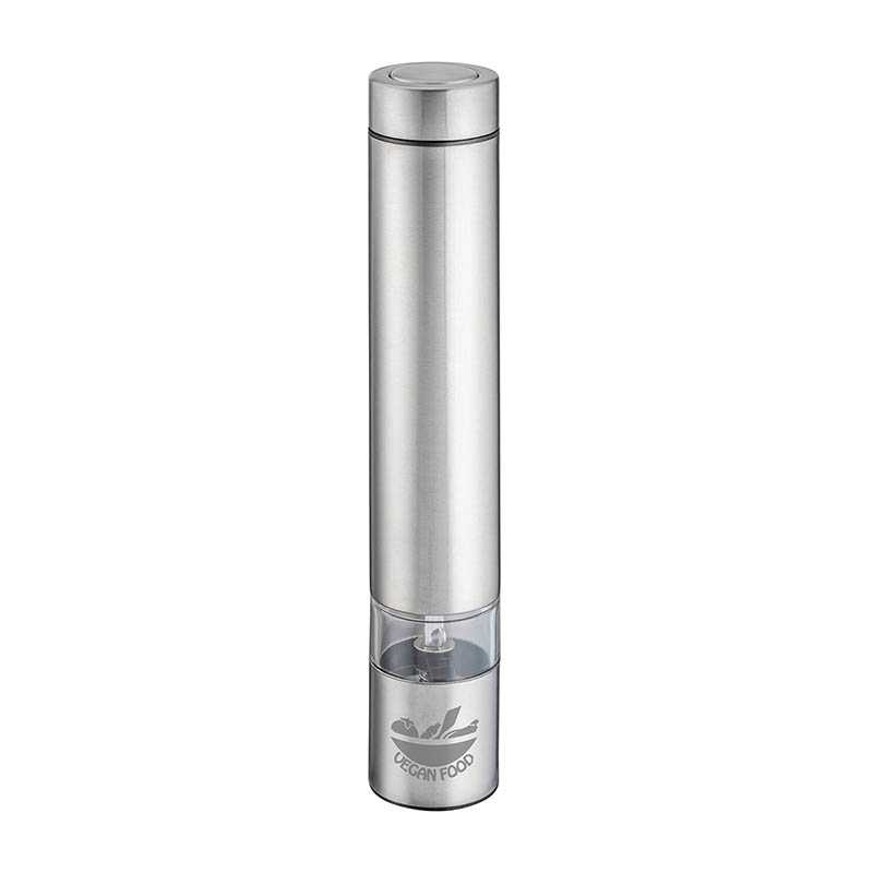Grinding at the touch of a button with just one hand: This handy, stainless steel salt or pepper mill has a ceramic grinder and is battery operated. A ceramic grinder is the better choice for "moist" salts such as Himalayan salt or sea salt. This grinder is also ideal for use with pepper corns.