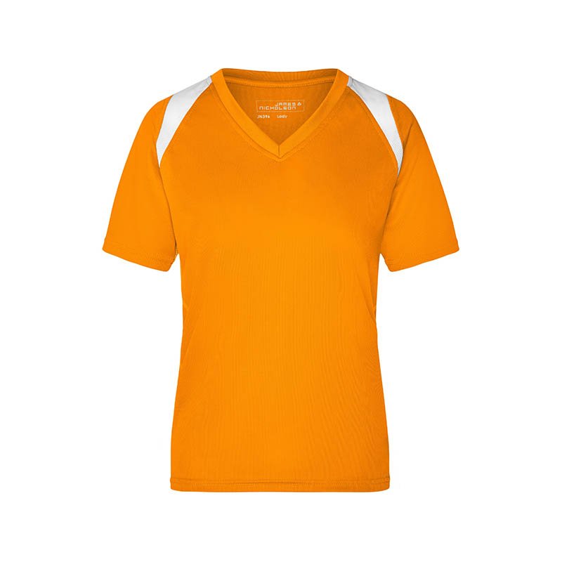 Dámské prodyšné běžecké tričko James & Nicholson s výstřihem do V..Vnější materiál: 100% polyester.Rychleschnoucí, lehké a pohodlné .Kontrastní vložky .Reflexní pruhy.TOPCOOL .Mikro polyester odvádí vlhkost od pokožky na povrch tkaniny, kde se odpařuje .