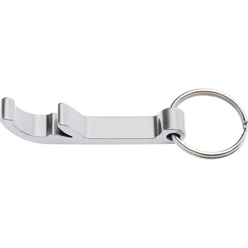 Hliníkový otvárač na fľaše a plechovky s krúžkom na kľúče.