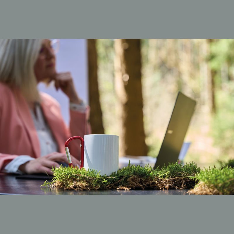 Keramický hrnček so sublimačným náterom, korkovým dnom a lesklým povrchom. Podstavec, ktorý je možné odobrať, je určený na ochranu povrchu hrnčeka. Kapacita až 390 ml. Bez podstavca je možné umývať v umývačke riadu. Dodávané v darčekovej krabičke z kraftového papiera. Hrnček možno umývať v umývačke riadu a je odolný voči minimálne 250 umývacím cyklom (vrátane sublimačnej tlače) podľa normy EN 12875-1. Keďže výrobok je vyrobený z prírodných materiálov, farba a výsledok tlače sa môžu medzi výrobkami líšiť. o87 x 110 mm