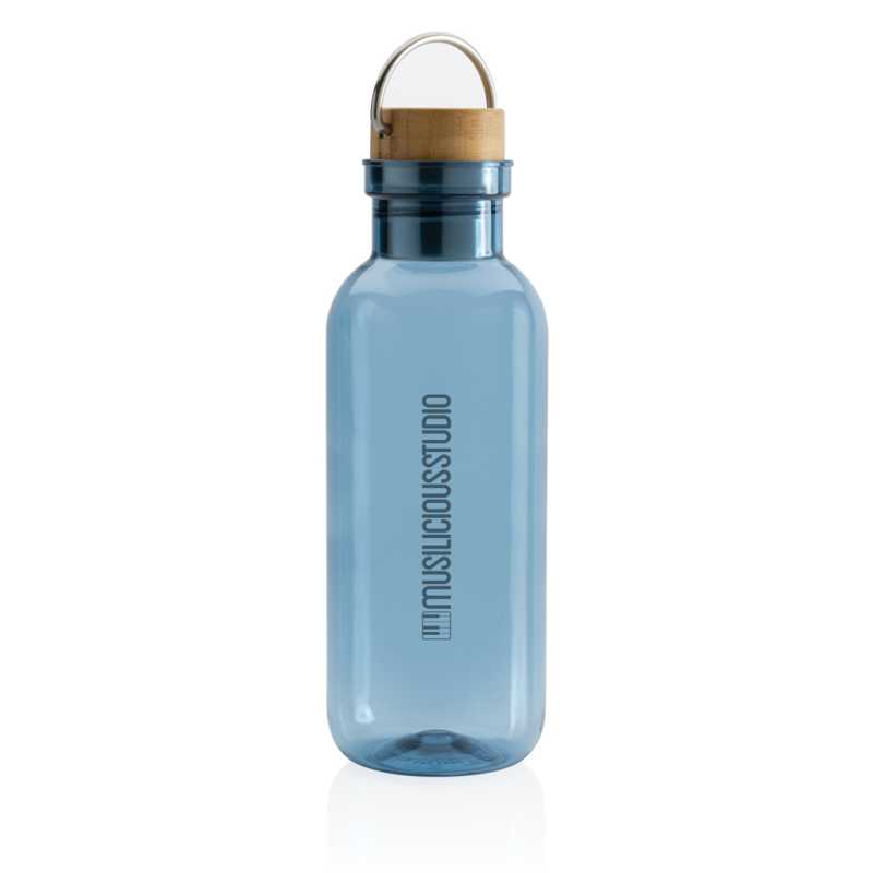 Nepriepustná fľaša na vodu so štýlovým bambusovým uzáverom a praktickým madlom. Jednostenné telo fľaše je vyrobené z RCS recyklovaného PET plastu. RCS zaručuje kompletne certifikovaný dodávateľský reťazec, čím je možné garantovať skutočné obsiahnutie recyklátu. Podiel použitého recyklovaného materiálu vzhľadom na celkovú váhu produktu: 56%. Bambusový uzáver s FSC certifikáciou. Len na studené nápoje a na ručné umývanie. Bez BPA. Objem: 680 ml. Balené v FSC kraftovej krabičke.