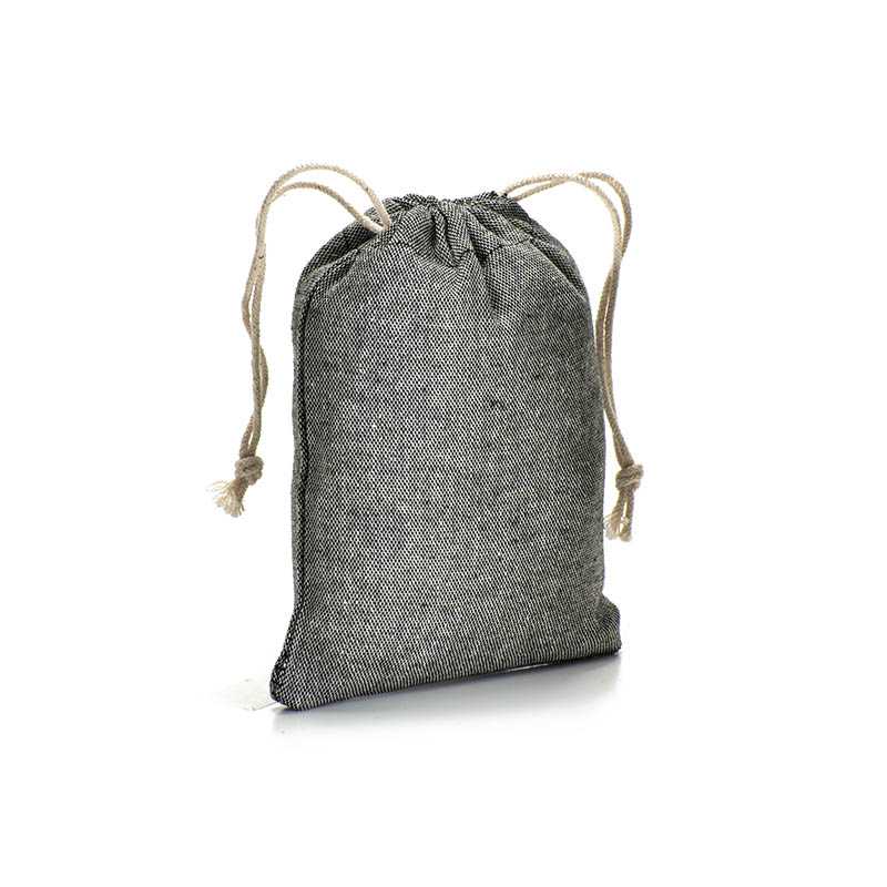 Recycled cotton gift bag 150 g/m2,with choke closure, 10 x 14 cm