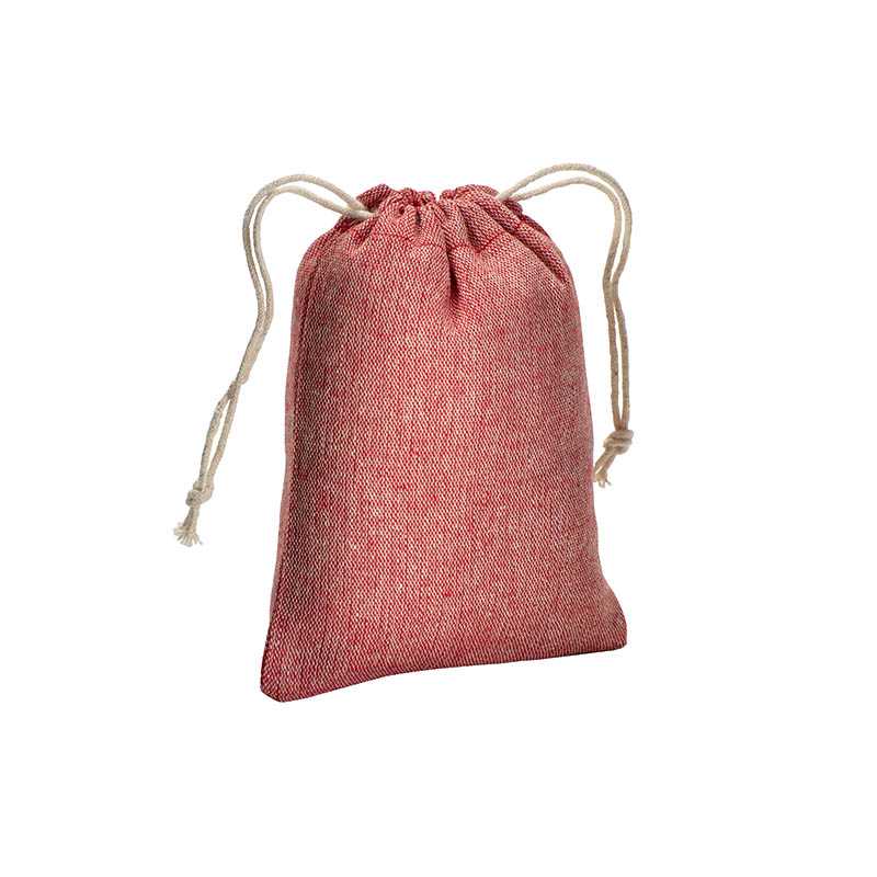 Recycled cotton gift bag 150 g/m2,with choke closure, 10 x 14 cm