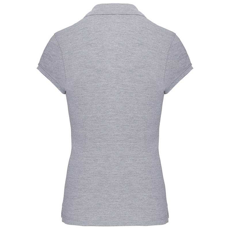 NOVINKA 2022. Shaped ladies piqué shirt with side vents, flat knit collar and three buttons at front placket. • 100% ring spun combed cotton in Lacoste knit, color 120 greymelange: 85% cotton, 15% viscose • 200 g/m2 • 900 black, 935 steel grey, 120 greymelange, 100 white, 173 sand, 600 navy, 516 sky-blue, 632 ocean blue, 530 blue, 728 fresh green, 730 lime, 707 bottle green, 481 bordeaux, 400 red, 305 bright orange, 208 lemon • XS–XXL