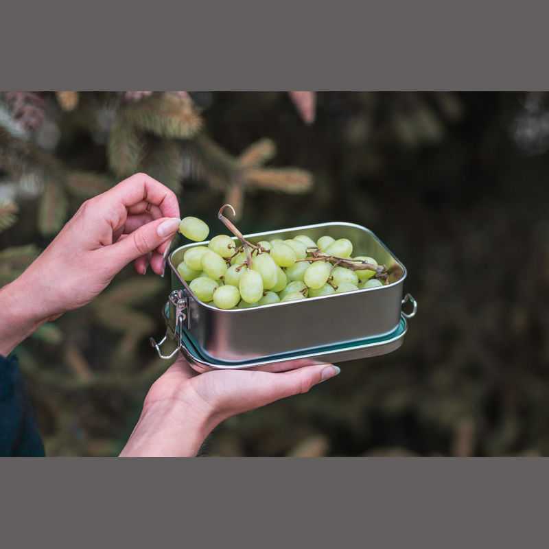 Stainless steel lunch box STRONG BREAK: lock clips, with seal to ensure safe transport, capacity: approx. 1100 ml
