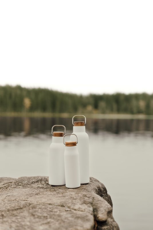 Nepriepustná termo fľaša s bezpečným skrutkovacím uzáverom so širokým hrdlom pre ľahké čistenie a plnenie. Dvojstenná vákuová izolácia uchová nápoj horúci po dobu až 5h a studený až 15h. Vyrobené z RCS recyklovanej nehrdzavejúcej ocele. RCS (Recycled Claim Standard) je globálny štandard, ktorý umožňuje overiť použitie recyklovaného materiálu v produkte naprieč celým dodávateľským reťazcom. Podiel použitého recyklovaného materiálu vzhľadom na celkovú váhu produktu: 77%. Vnútorná časť viečka z plastu zaisťuje nepriepustnosť. Bez BPA. Objem: 600 ml. Balené v FSC kraftovej krabičke.