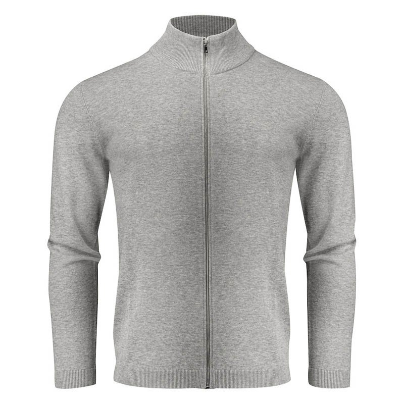 Knitted cardigan with metal zipper closure in center front. 1x1 rib at collar, sleeves, and bottom seam. Oeko-Tex 100 certified. 100% organic cotton, 12 GG