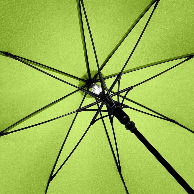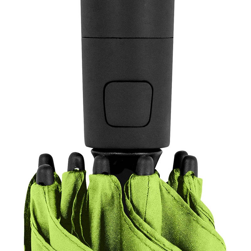 Convenient automatic function for quick opening, high-quality Windproof PLUS system for maximum frame flexibility in stormy conditions, flexible fibreglass ribs, Soft-Feel handle with integrated push button, button to turn off the light and promotional labelling option, higher corrosion protection due to black galvanised steel shaft, WEEE reg. no. DE 14360689, Batteries (3 x AAA) included in the scope of deliver.