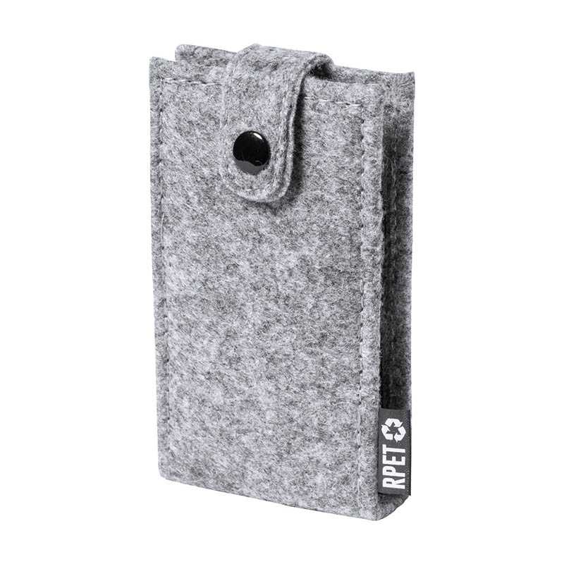 NOVINKA 2025. Manicure set with 6 accessories and case made in Felt RPET, the result of the combination of the recycling processes of plastic materials along with the millenary technique of felt manufacturing, resulting in an eco-trend material that, in addition to being of recycled origin, also becomes recyclable. Metal accessories in stainless steel with black finish: scissors, tweezers, nail clippers, nail file and 2 cuticle removers. With push button closure and distinctive RPET label.