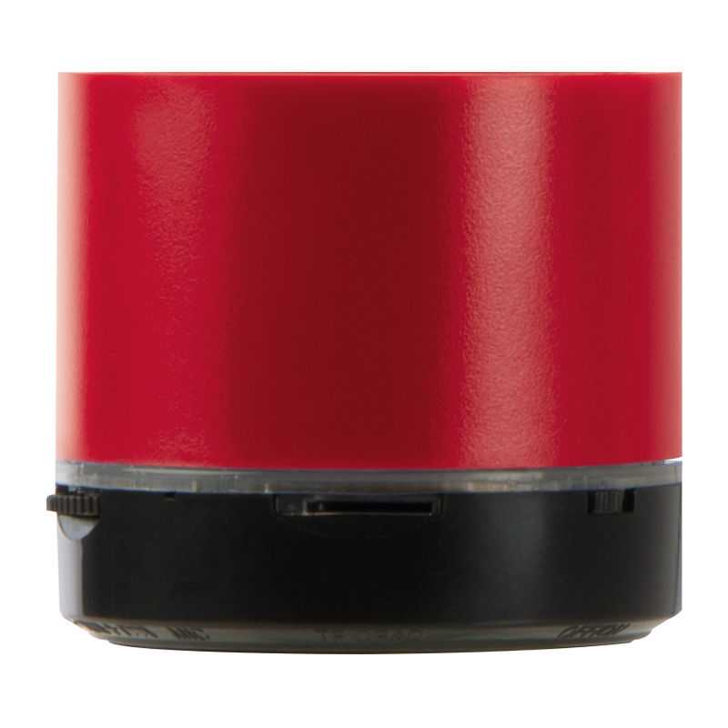 NOVINKA 2025. Compact speaker with Bluetooth® connection. Made of recycled aluminium, a material with almost infinite recycling possibilities, keeping its original properties and consuming less energy in this process. 3W power and 450 mAh battery. Bluetooth® 5.0 connection, with hands-free function and FM radio. Slot for micro SD cards, with ambient light at the base. Available in a wide range of colours and presented in an individual kraft design box, with instruction manual in English and Spanish.