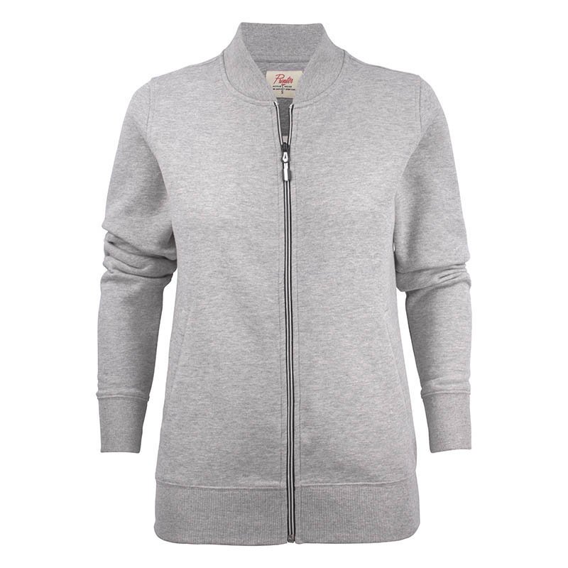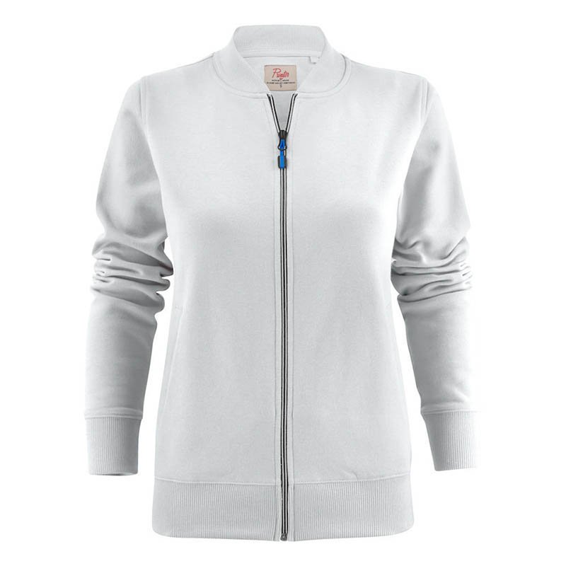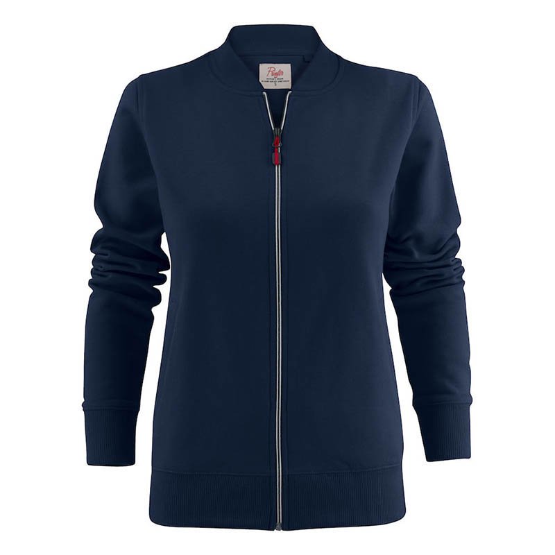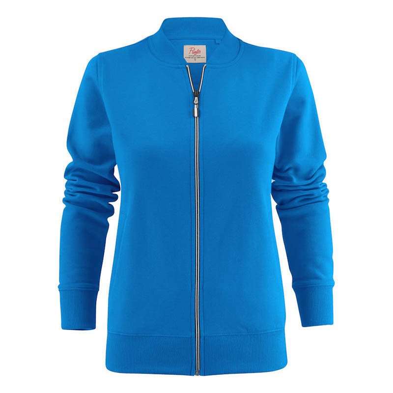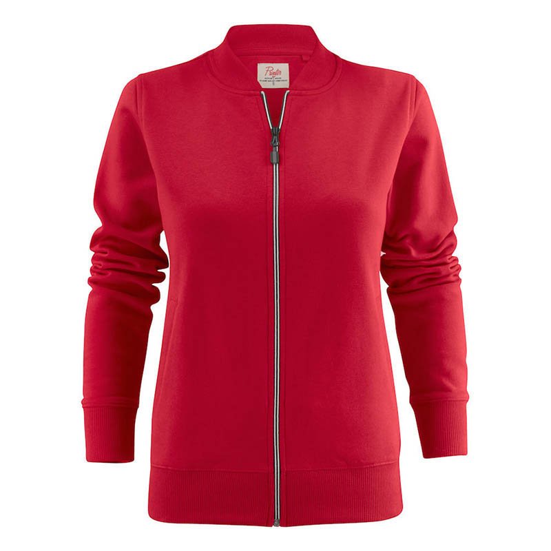 Sweatshirt jacket. Coil zip in contrast colour at front and pockets. Female style with welted pockets and ribbed collar. Oeko-tex. • 60% cotton, 40% polyester • 280 g/m2 • 400 red, 600 navy, 632 blue, 120 grey melange (85% bawełna, 15% wiskoza), 728 green, 900 black, 935 grey, 100 white • XS–XXL