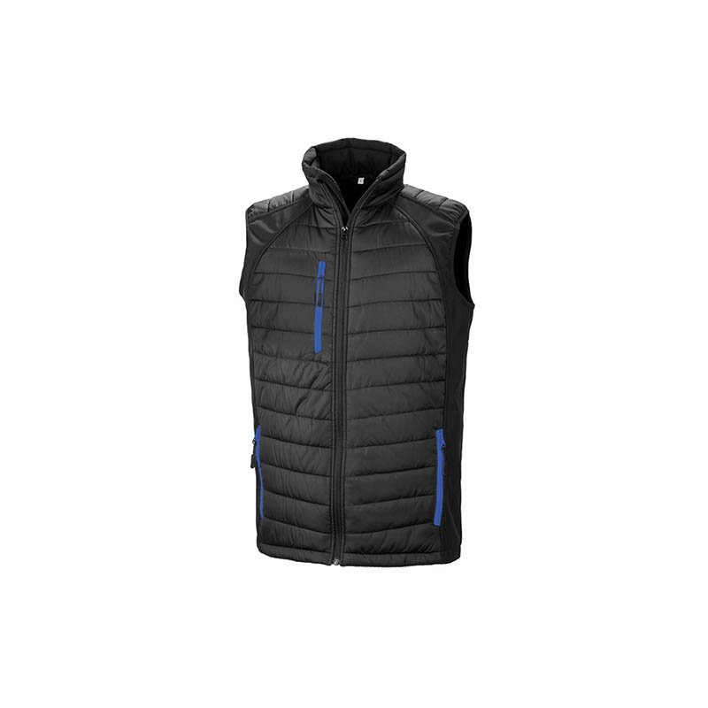 Contrast colour pocket zips Full front zip with chin guard Stand-up padded collar Padded body Hangtag On-trend padded + soft shell combination Super soft, lightweight & warm Ready to brand Quiet to wear Black zip pulls Soft bound armhole