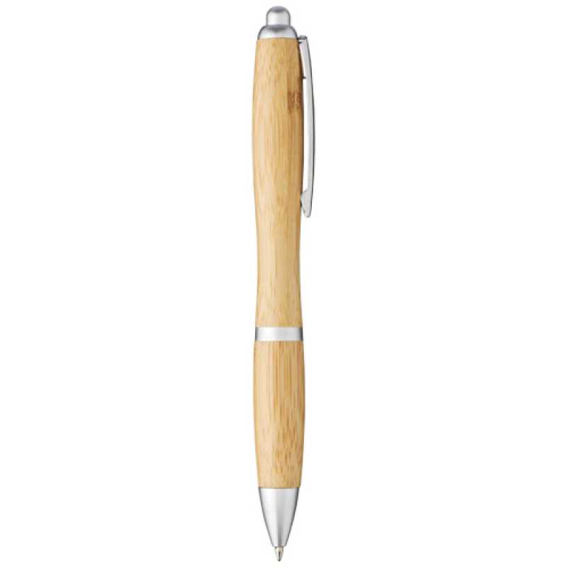 Ekologické kuličkové pero se stiskacím mechanismem, tělem vyrobeným z bambusu, s detaily z ABS plastu a chromovou sponou. Barva bambusového materiálu se může různit.
