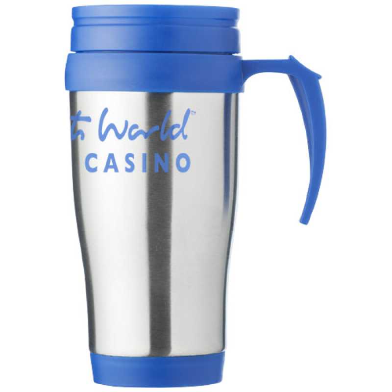 Sanibel je ideální hrnek pro pití nápojů na cestách. Hrnek má dvojitou izolační stěnu, která udržuje nápoje dlouho teplé. Otočné víčko s posuvným palcem usnadňuje pití až 400 ml nápojů. Rukojeť s ergonomickou opěrkou pro palec navíc zajišťuje dobré držení. Hrnek Sanibel se skládá z nerezové oceli a černého plastu, takže je velmi pevný, odolný proti korozi a snadno se čistí.