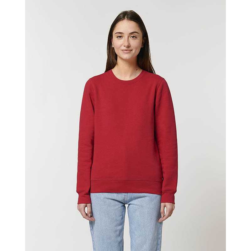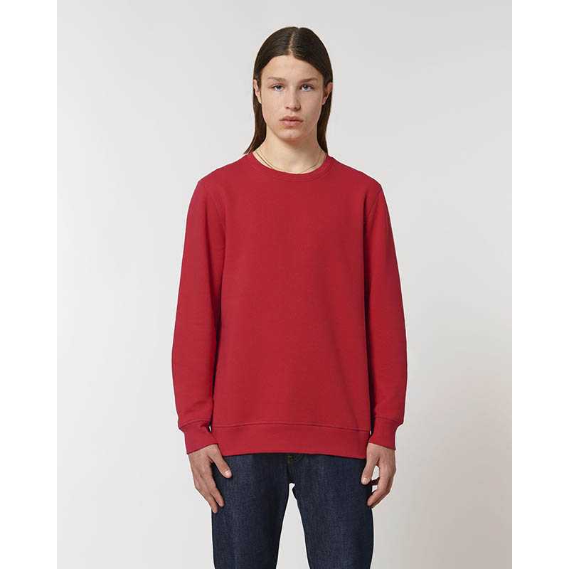 85 % organická bavlna/15 % recyklovaný polyester.Prstencovo spriadaná česaná bavlna.Rovný strih.3-vrstvový kartáčovaný flís, LSF (Low Shrinkage Fleece: predzrazený flís).1/2 kruhu vzadu.1 x 1 rebrovaný výstrih, spodný okraj a manžety.Dvojité prešívanie na manžetách, prieramkoch a spodnom okraji.Jednoduché vrchné prešívanie vo výstrihu.Podlepený výstrih vnútri na zadnej strane.