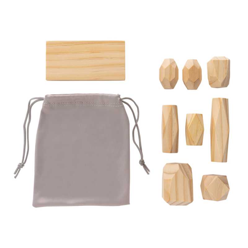 Balančné kamene vyrobené z borovicového dreva na doplnenie interiéru v domácnosti alebo napríklad v kancelárii. Kamene zároveň predstavujú chytľavú zábavu testujúcu balančné schopnosti. Balené v puzdre z GRS recyklovaného polyesteru. Prirodzená kresba dreva dodáva jedinečný rustikálny dojem.