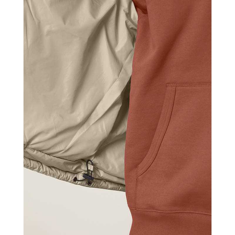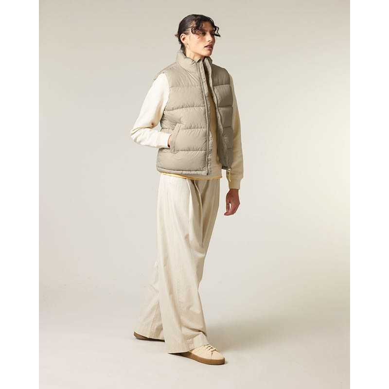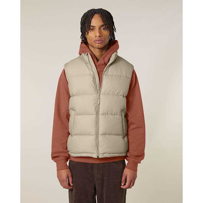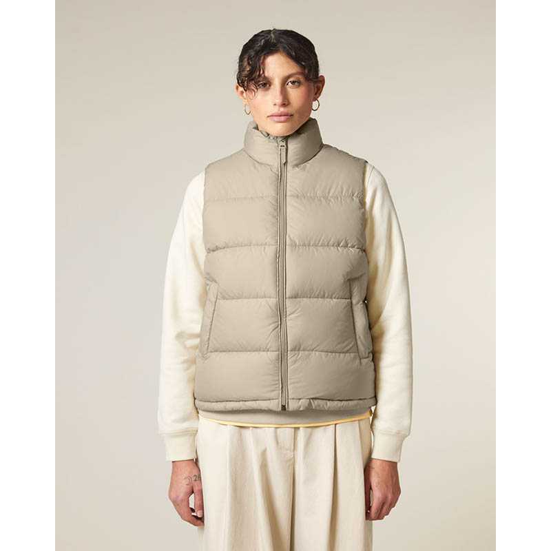 GRS ripstop polyester 360T potažený PU. Mírně zateplená vesta. Recyklovaný polyester. Zateplená prvotřídním polstrováním DuPont™. Ripstopová tkanina 1x1 v matném provedení. Zip SBS. Vnitřní kapsa. 2 velké přední kapsy. Nastavitelný lem se stahovací šňůrko