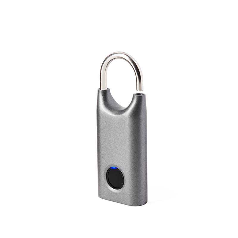Biometric fingerprints padlock - Indoor/Outdoor use - Unlocking in less than 0.5 second - Store up to 10 different fingerprints - LED indicator - Battery life: up to 3000 unlock times after full charge / Stand by time: up to 12 months - Charging time: 1.5h - Rechargeable on USB-C port (cable included) - Water resistance: IP65 - Material: stainless steel ring and Zinc alloy bodySuggested branding: laser - pad print