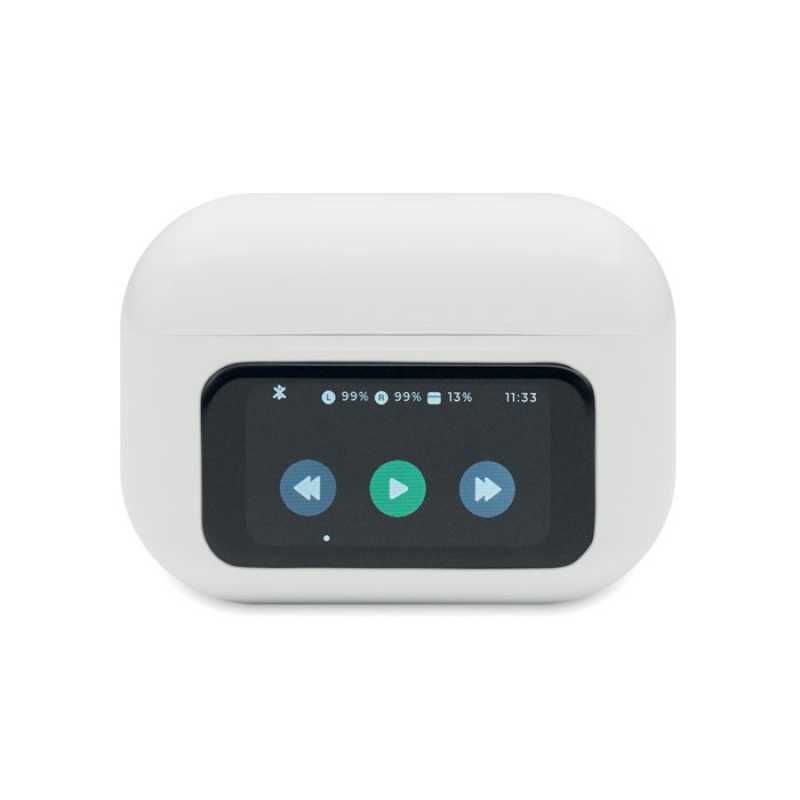 Bezdrátová 5.0 stereo sluchátka (30 mAh) True Wireless Stereo (TWS) z ABS s ANC/ENC a mikrofonem. Nabíjecí základna 230 mAh. Dotykový displej.