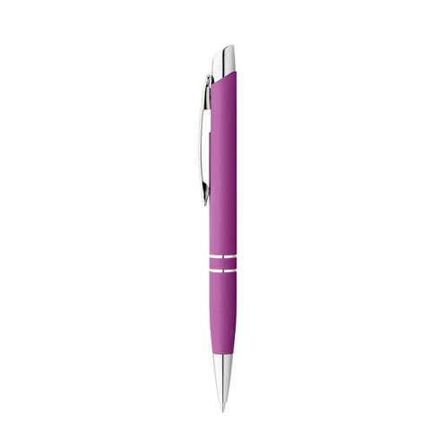 Hliníkové guľôčkové pero s pogumovaným povrchom a klipom. Dostupné v širokej škále farieb. Modrý atrament. o11 x 139 mm