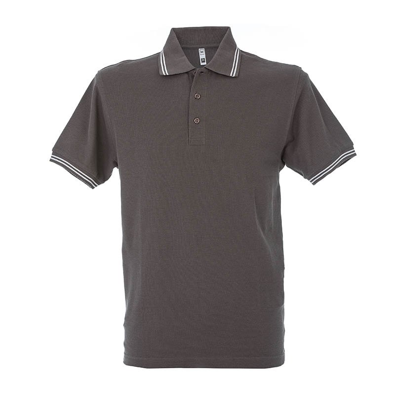 "Short sleeve polo - 100% combed polo - Three matching buttons - Colored piping on collar and cuffs - Tape inside collar - Individually sold Weight: 180 g/m2"